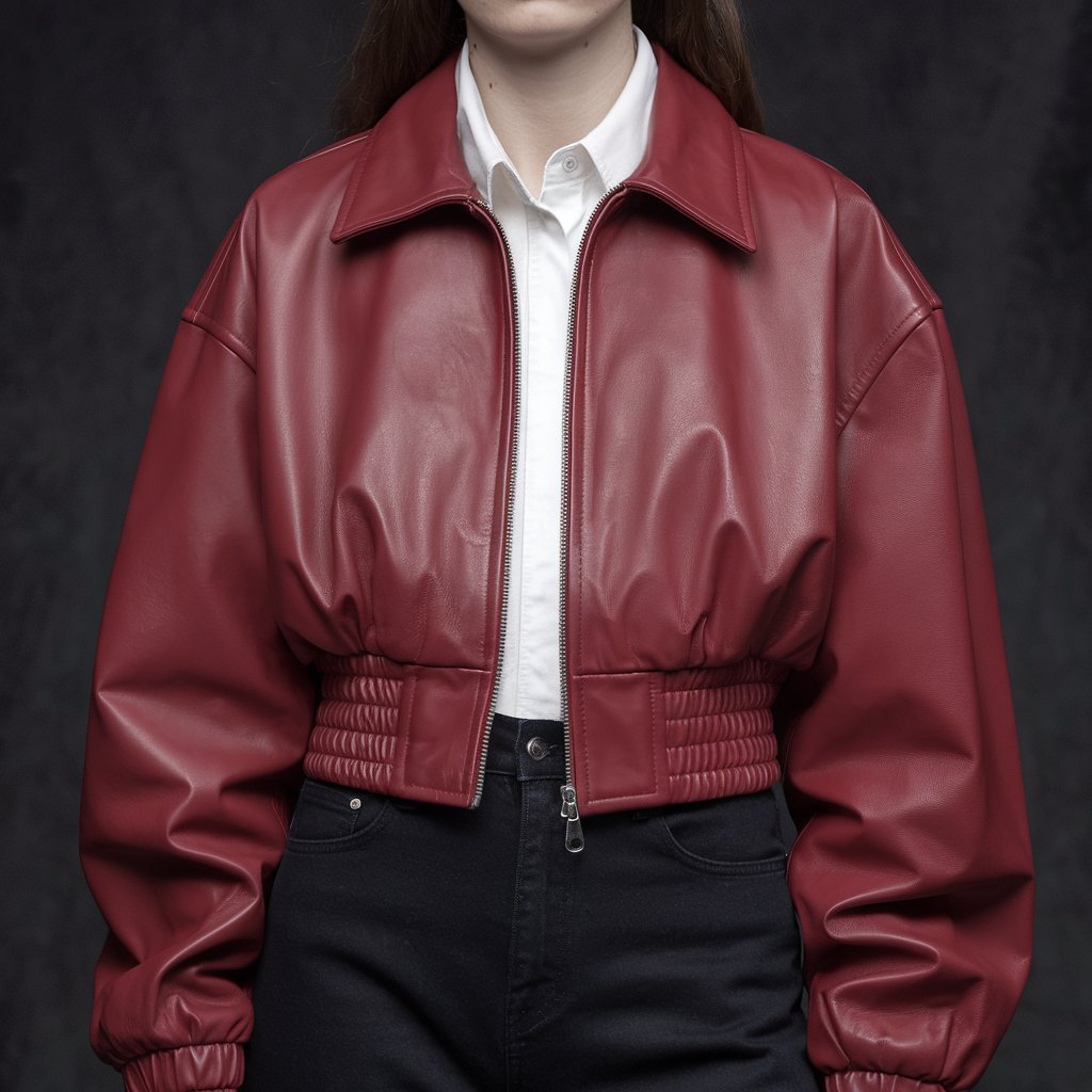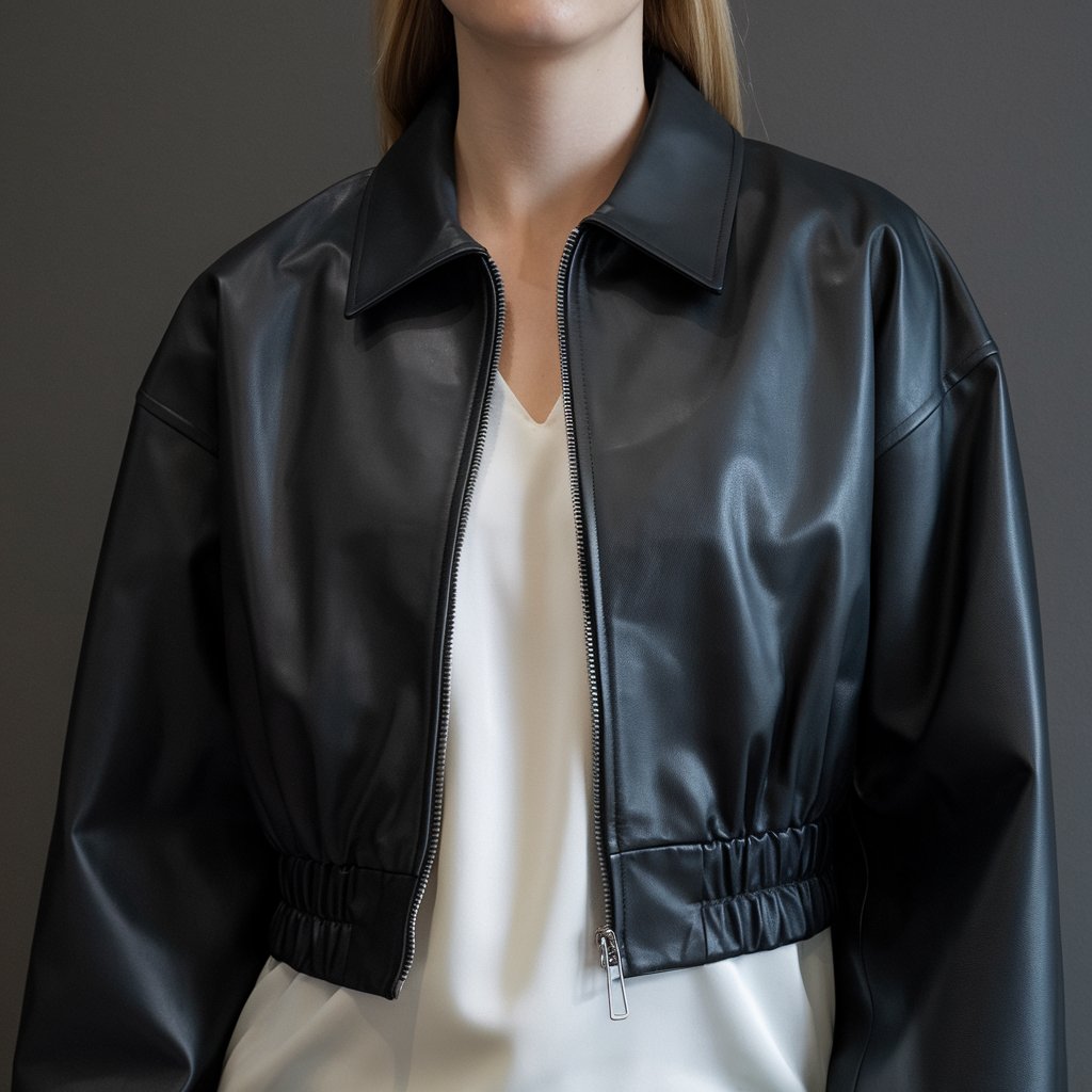 This is not your standard leather jacket; it is a sculpted piece designed to transform your silhouette. Meticulously crafted from our signature buttery-soft lambskin, this jacket is cut to sit perfectly. The sharp, cropped line creates a powerful shape, defining the form. It’s a versatile statement piece, designed to be the perfect partner for high-waisted trousers, flowing skirts, or draped over a dress. This is modern armor, handcrafted for the confident woman.