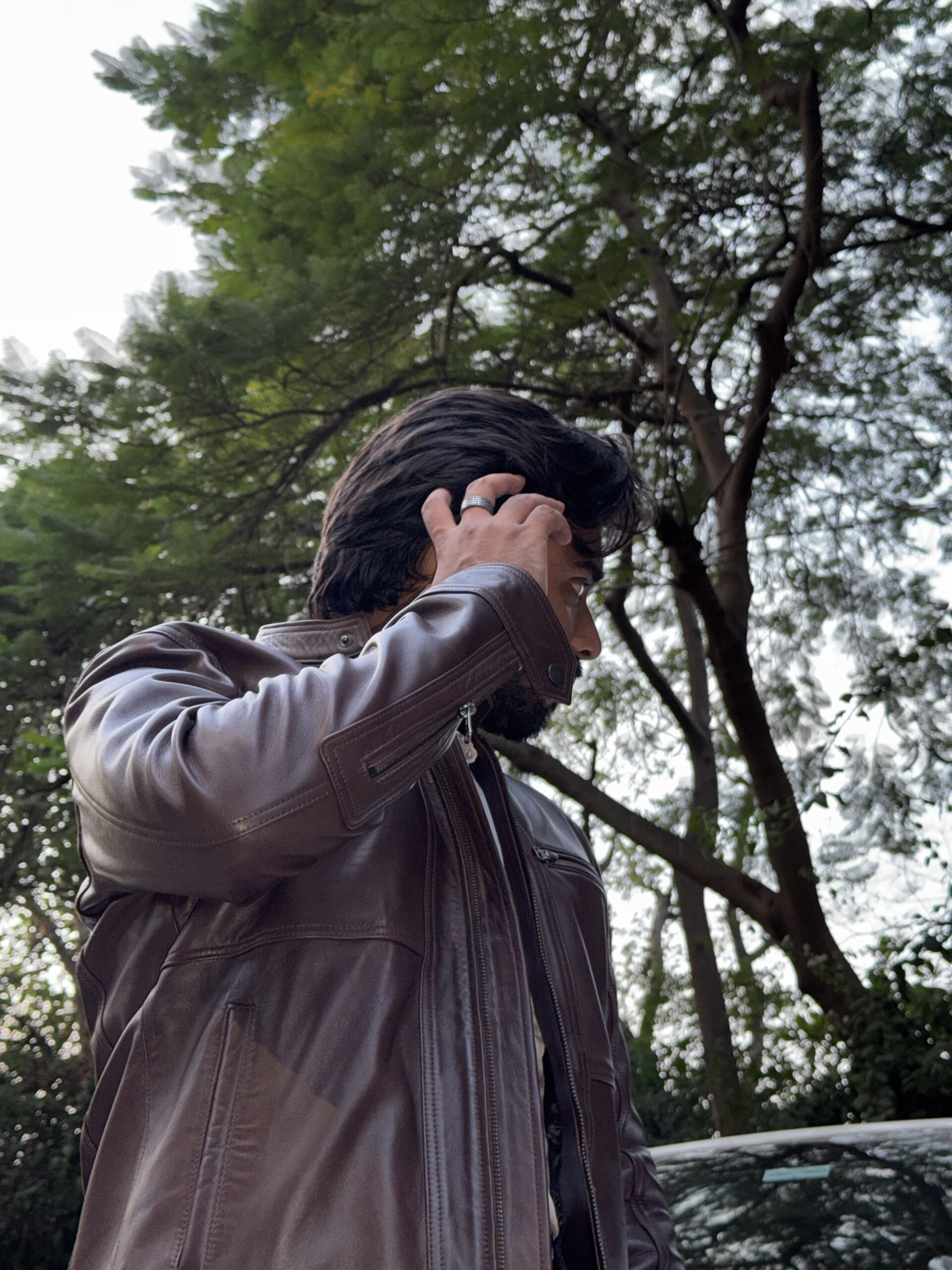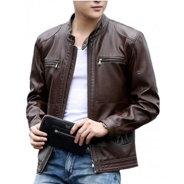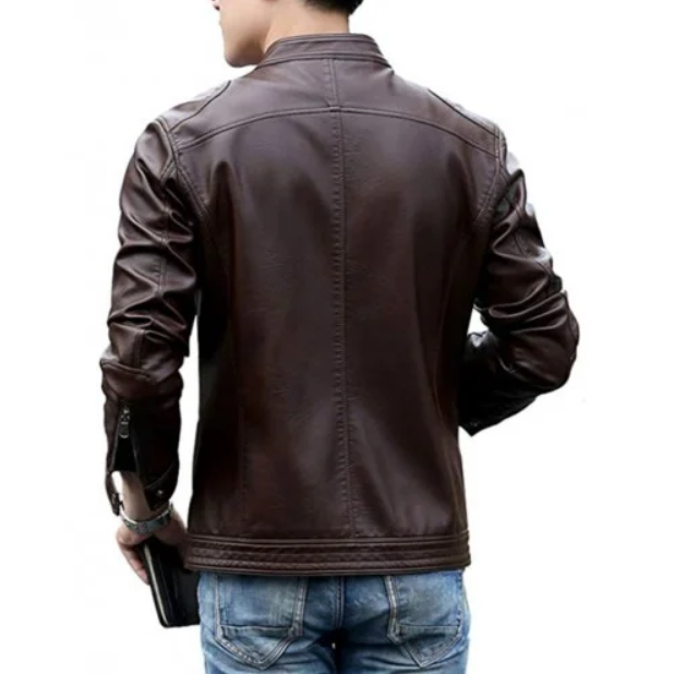 An icon of streamlined style, reimagined by VEYLORIA. Our Café Racer is presented in a sophisticated, versatile brown leather, chosen for its smooth texture and subtle character. This jacket honors its heritage with a clean, low-profile round collar and a simple button snap, ensuring a sharp line. Where it truly stands apart is the craftsmanship; the fine, meticulous stitching creates a flawless structure that feels both modern and timeless. Lined for comfort, this piece is engineered to mold to your form. It’s the definitive jacket for a polished, everyday look—an investment in a legacy of style.